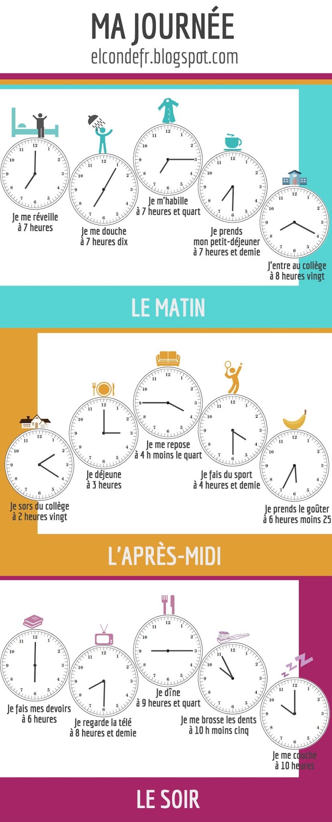 Pinchad en la imagen para hacer los ejercicios. Luego, pinchad en Vocabulaire y haced los dos ejercicios y después. pinchad en Emploi du temps y haced los tres ejercicios propuestos.