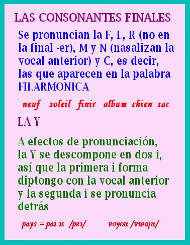 Por ello, aquí tenéis una presentación del sistema fonético francés bastante reducido a lo esencial para que os sea fácil empezar adecuadamente. Podéis imprimirlo para consultarlo cuando tengáis dudas. La transcripción fonética os servirá para saber cómo se pronuncia una palabra cuando la busquéis en el diccionario.